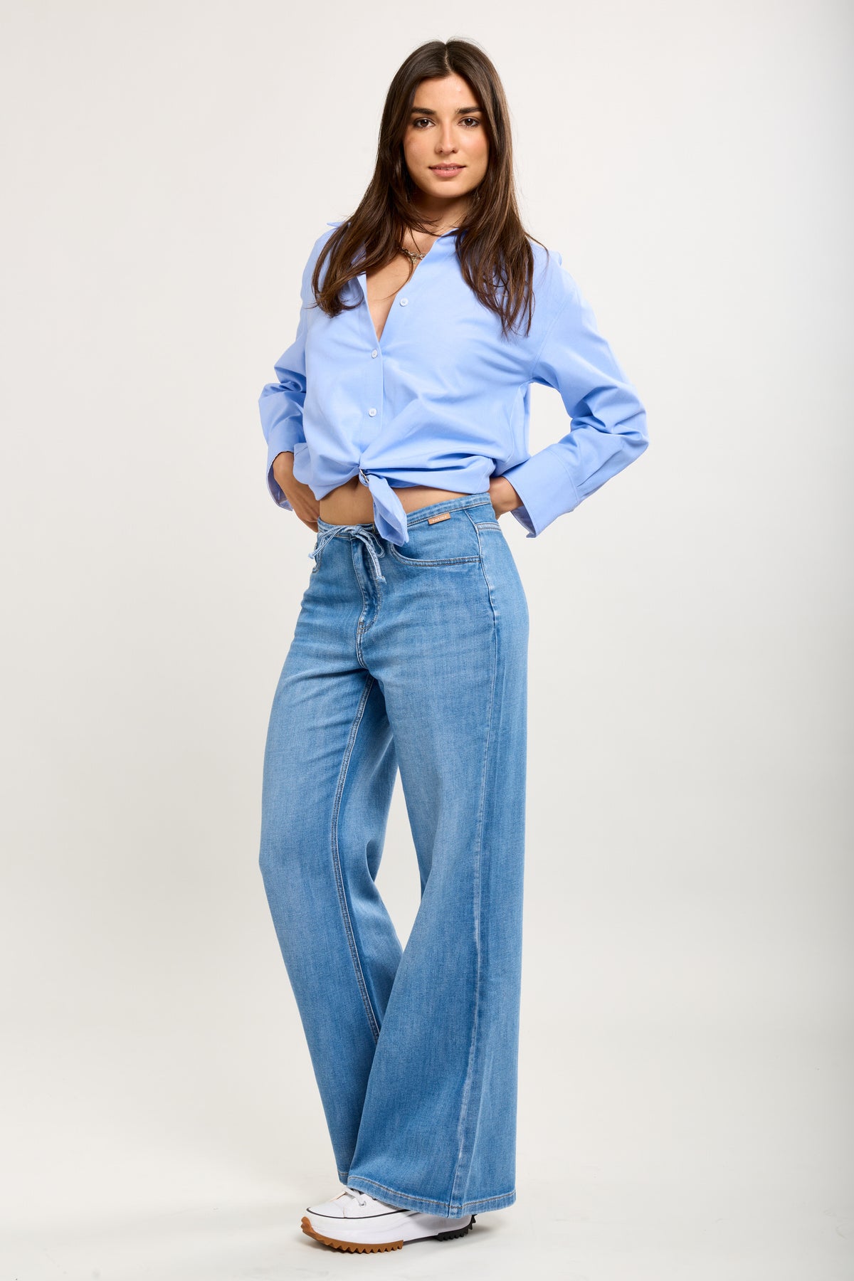 Experience comfort and style with our Wide Leg Stretch Jeans. Crafted from soft stretch fabric, these jeans feature a wide cut and a convenient zip closure, complemented by a drawstring waist for an adjustable fit. With two front pockets, they're perfect for everyday wear, blending functionality with a casual look.