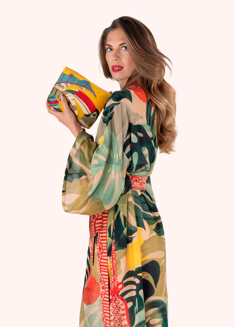Elevate your everyday style with the vibrant SS26 Mid Sized Embroidered Zip Pouch featuring a delightful toucan and lush foliage. Perfect for organizing essentials or as a charming gift for nature lovers, it adds a touch of tropical flair to any outing. Keep it handy for evening drinks or travel adventures!