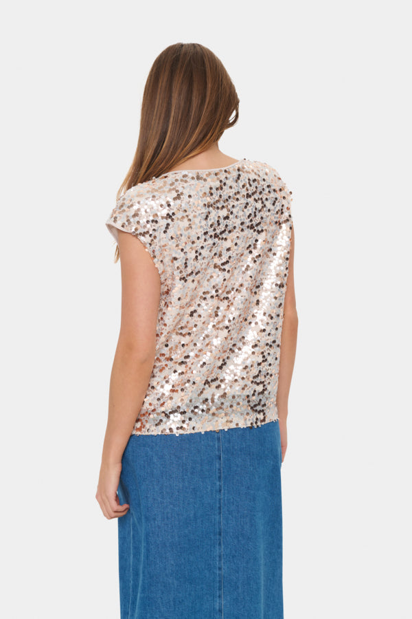 The Karlie SZ top in gold sequins will add a touch of sparkle to your wardrobe! Style with a trouser or skirt or style back your denims.
