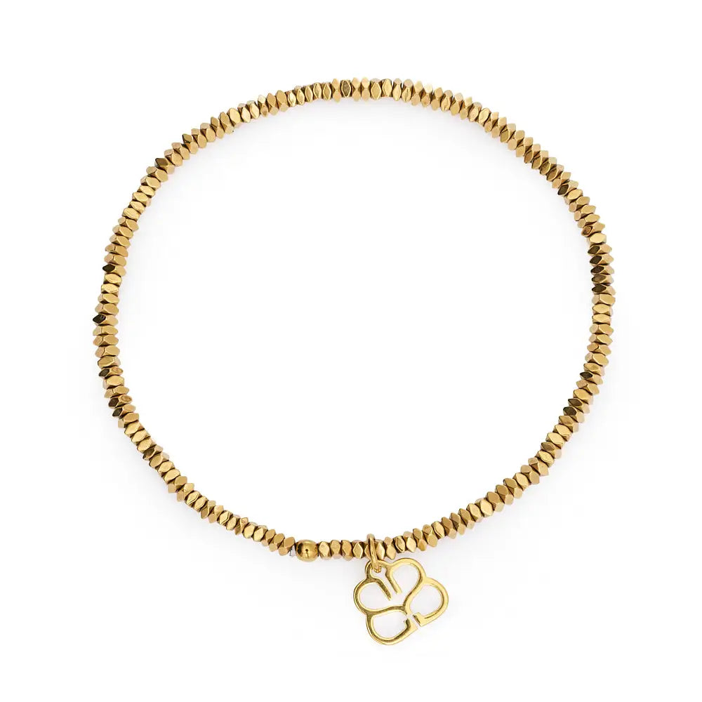 Regular price £20.00The Zora layering bracelet features a slender design adorned with mini faceted beads, enhancing tactile interest in any wrist stack. Its 14k gold PVD finish ensures durability and resistance to wear, suitable for daily use. The subtle stretch fit provides comfort, while the signature BB charm adds a distinctive element of style.