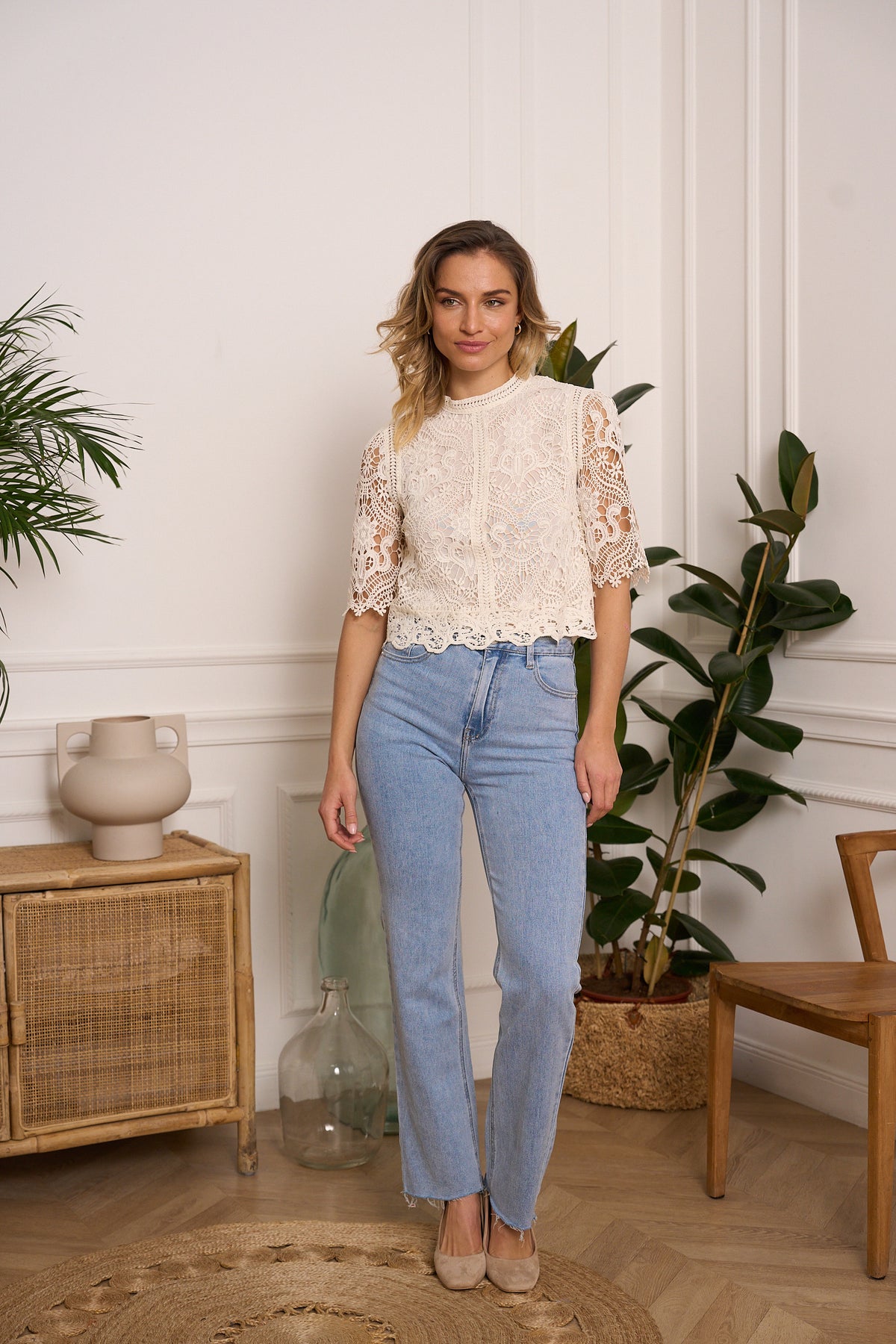 Ellie Lace Short Sleeve Top Ecru