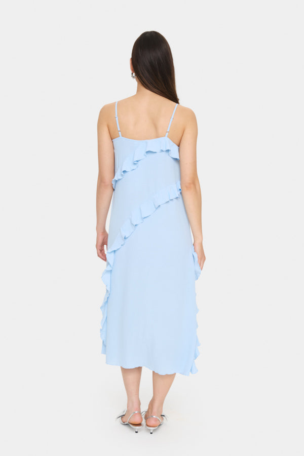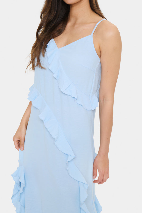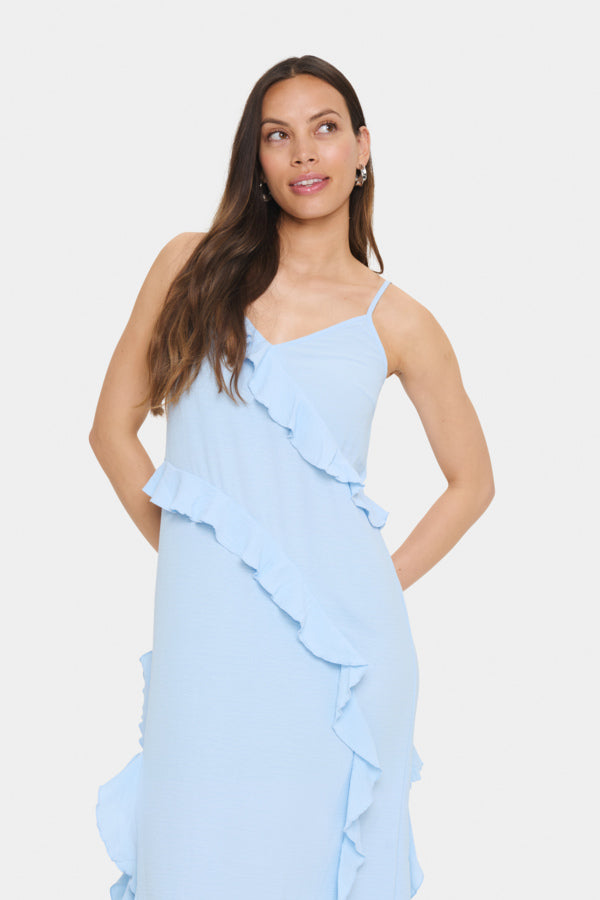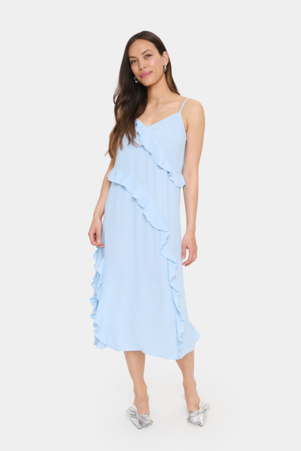 Regular price £49.99The Lillian SZ Dress by Saint Tropez features a V-neckline and delicate ruffles, offering a refined and elegant appearance. Crafted with attention to detail, this spaghetti strap midi dress is suitable for various occasions, combining comfort with a sophisticated profile. Its design enhances the silhouette, promoting confidence and grace.