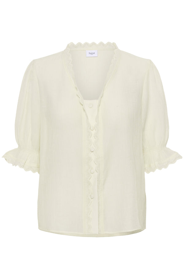 The Kristel SZ shirt is a women's blouse designed with a relaxed fit and a delicate scalloped neckline. Featuring short sleeves with subtle ruffle cuffs, this shirt offers lasting comfort and versatility, making it an essential addition to any contemporary wardrobe.
